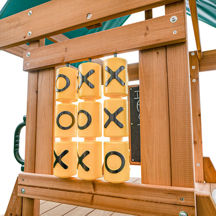 • 120cm high raised playhouse with noughts crosses, telescope chalkboard