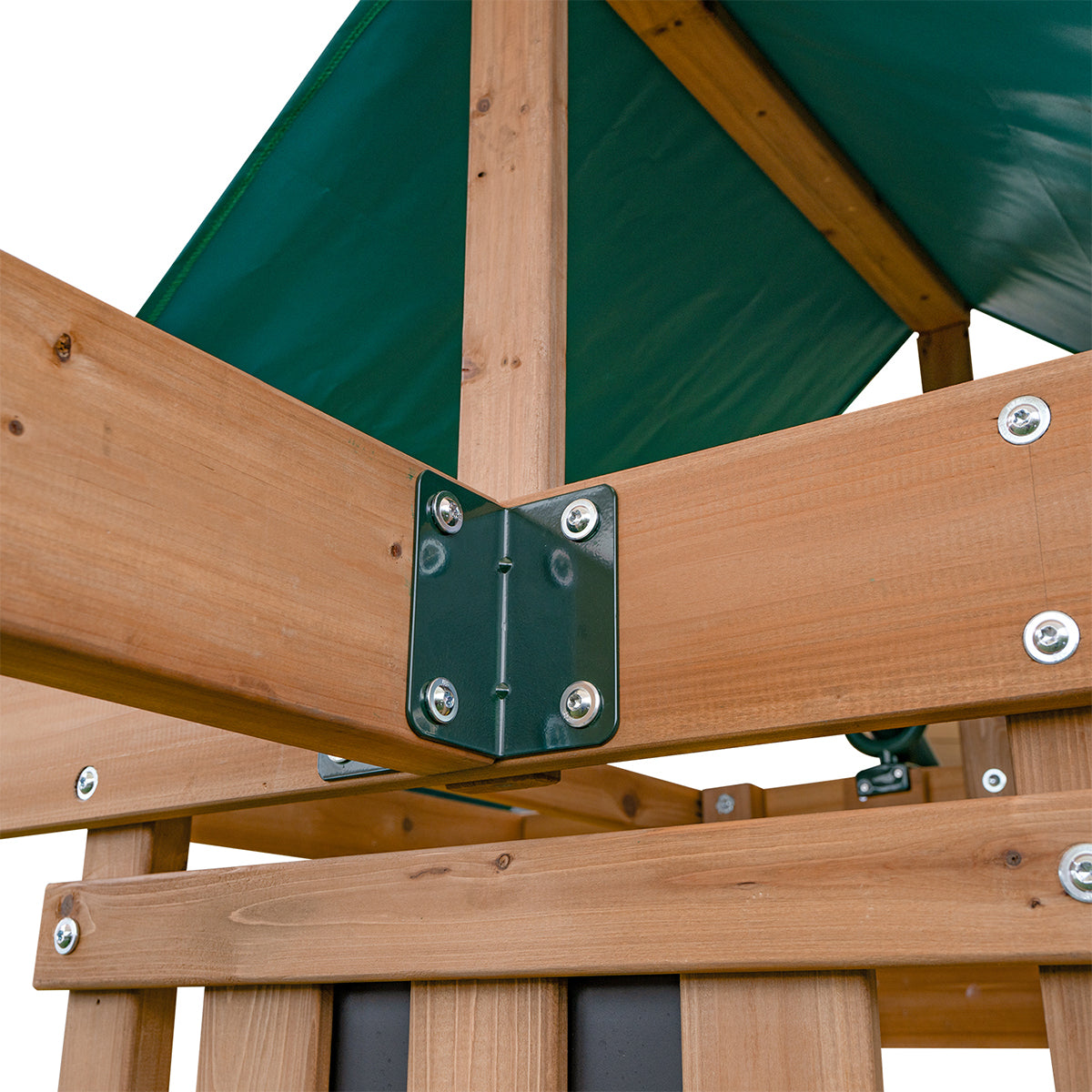 The Birmingham Play Centre Set is the ultimate backyard adventure for kids, offering more space and excitement than ever before. Kids can challenge themselves on the rock-climbing wall or easily access the play area via the sturdy ladder. The 3 Position Swing Beam comes equipped with two swings and a trapeze, giving your little ones endless options for a thrilling playtime. All Lifespan Kids products are built to last, with high-strength steel brackets featuring powder coating for maximum weather protection. The timber undergoes a high-temperature treatment, making it durable, resistant to rot and decay, and sustainably sourced to ensure a brighter future for your children.