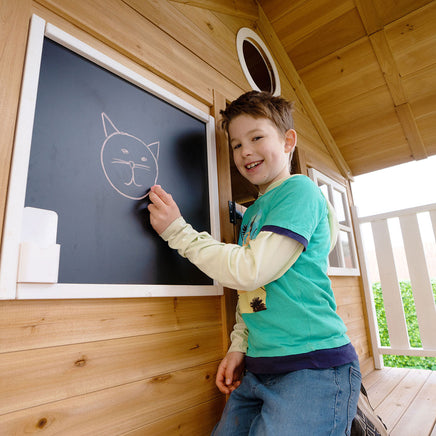 Capture the beach feeling in your backyard with the Warrigal Cubby House. This Queenslander style playhouse offers relaxed beach vibes for your kids in the massive sandpit under the raised Warrigal. Fun is on the horizon with a chalkboard, noughts and crosses, rock climbing wall and a 2.2m wavy slide.