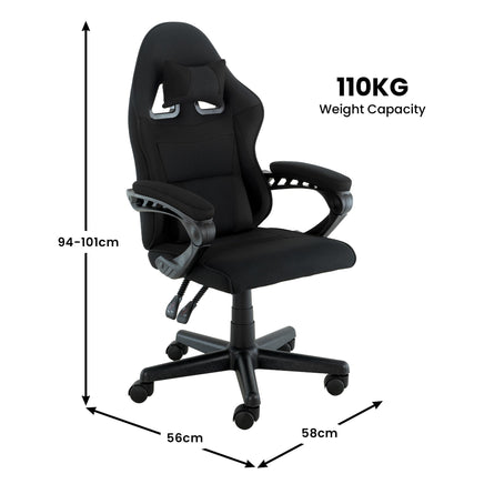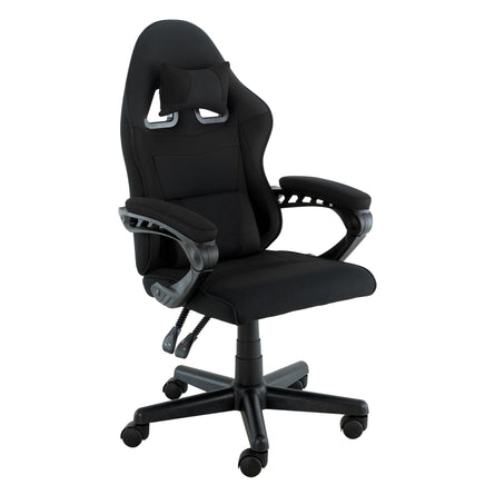 Give your setup a competitive edge with the Antre Study Gaming Chair. Designed for comfort and performance, it features a bold, motorsport-inspired profile with soft fabric upholstery and ergonomic support. The seat height adjusts easily with a Class 2 gas lift, while the dual tilt mechanism lets you recline and relax.