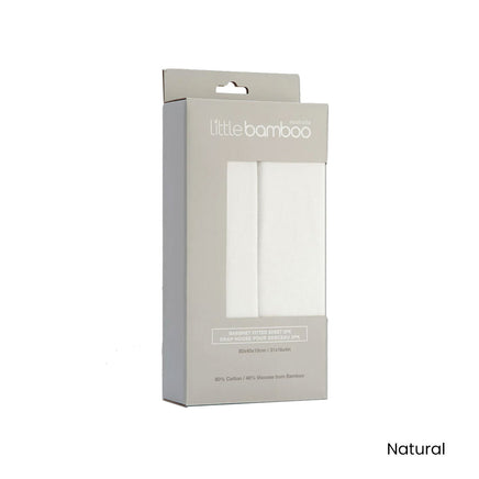 This Set of 2 Little Bamboo Jersey Fitted Sheet Bassinet Size Natural is deliciously soft and smooth, perfect for your baby's sensitive skin. Adorned in a charming solid colour design, this sheet combines elegance with functionality. Made from a blend of bamboo and cotton fabric, this sheet offers softness and breathability that will drift your little one into peaceful sleep.