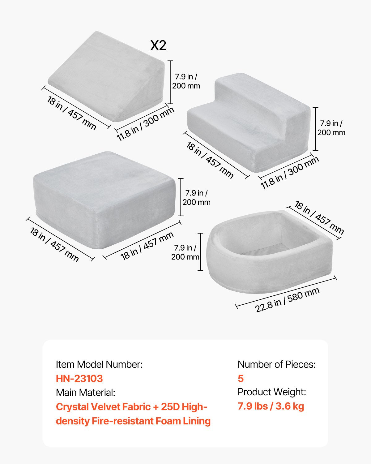 The baby climbing blocks are equipped with ultra-soft velvet fabric and filled with 25D high-density foam for excellent support, making it ideal for babies to climb or walk on. This promotes body coordination, enhances motor skills, and helps absorb impact to avoid injuries from falls. (Allow 48-72 hours for full expansion after unpacking.) NOTE: Need to put the foam into the leather case by yourself.