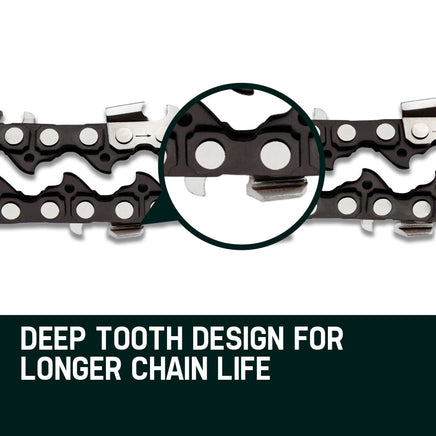 The Baumr-AG 22" Chainsaw Chain has added stay sharp properties thanks to the 0.325" pitch. It also has a deep tooth design which guarantees longer chain life while also being easy to file and sharpen when necessary. These collective attributes result in superior value that aren't delivered by other offerings.