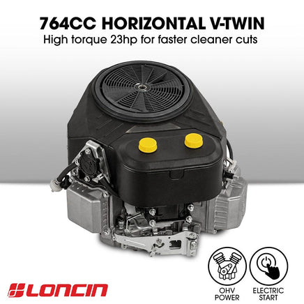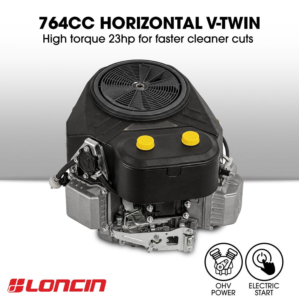 - Powerful 23HP Loncin V-Twin engine with electric start