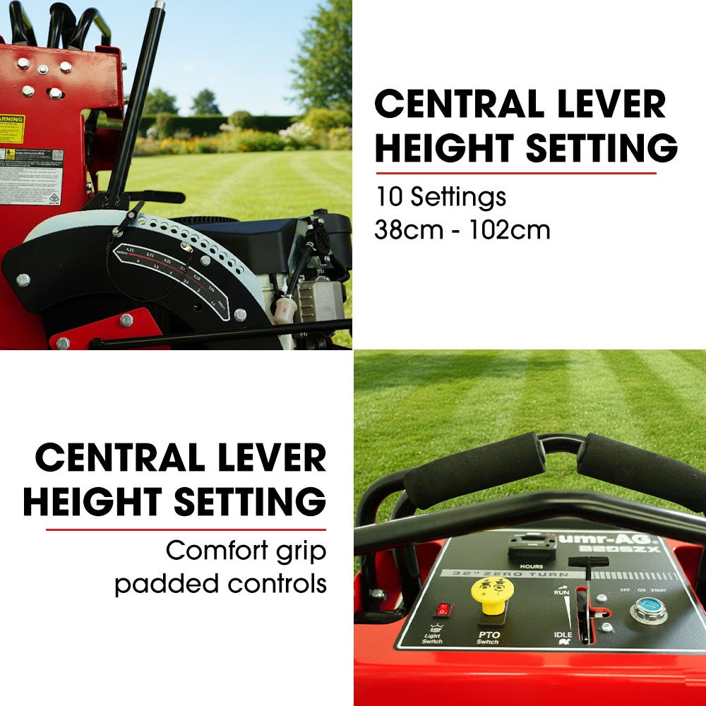 - Hydrostatic drive and turf tyres for precise 360-degree turn control