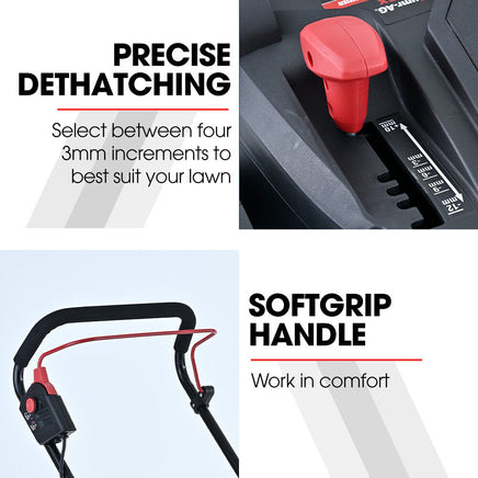 With a wide 370mm working path, the 370SX covers more ground in less time, making it perfect for residential lawns. Four adjustable depth settings (up to 3mm) allow you to tailor performance to your lawn’s specific needs.