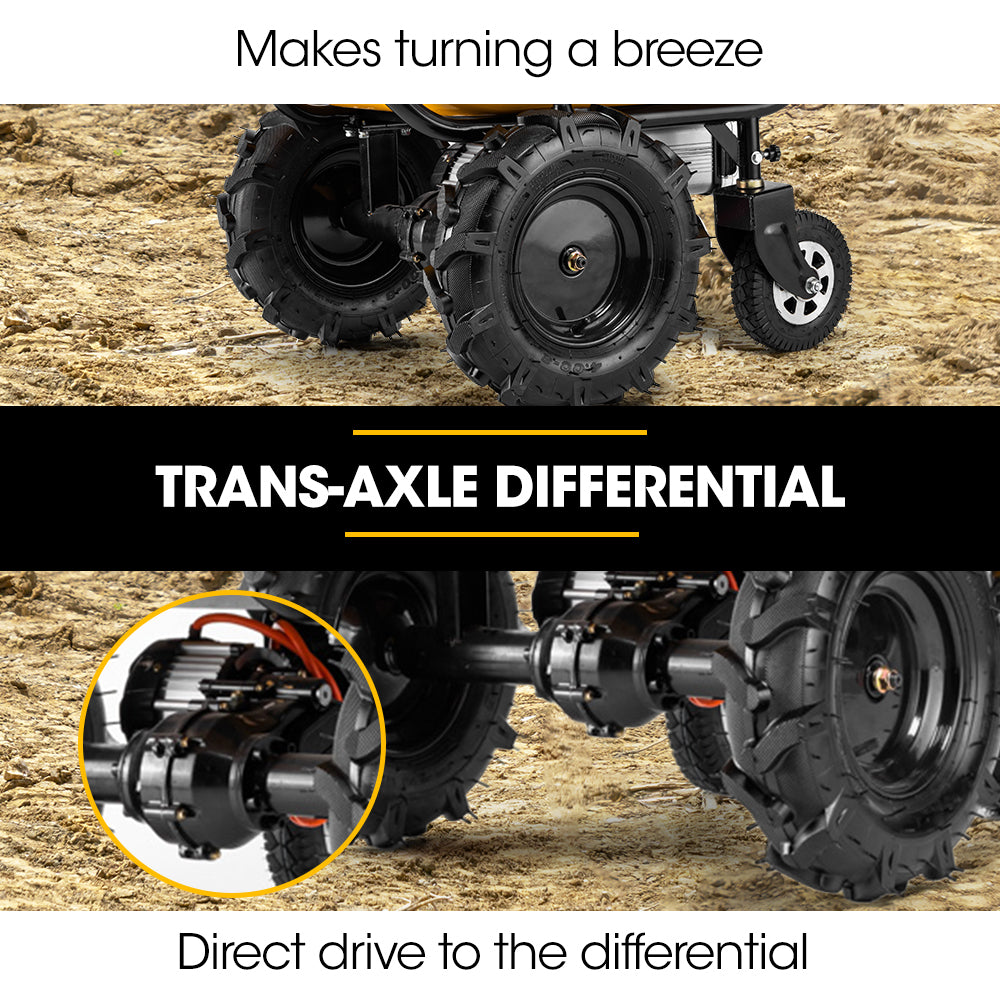 Experience the immense power of the brushless induction motor that delivers instant torque and reliable, constant performance with zero emissions, which gives you the option to work indoors. The differential drive gear ensures optimal power transfer, making it easy to handle with minimal effort. Say goodbye to cumbersome manual labour and embrace the convenience of the 2 Wheel Drive Baumr-AG BPR-800e.