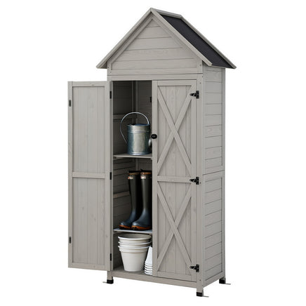 Organize with Gardeon's Spacious Outdoor Storage Cabinet – featuring 3 shelves and ample storage for all your tools & gear. Built to last, this weatherproof outdoor cupboard combines solid fir wood and a durable PVC roof for all-season protection. The 2cm thick wood resists cracks and corrosion, ensuring long-lasting use. Easy assembly with numbered parts, full hardware, and a clear guide. Versatile as a garden cupboard, balcony storage, or outdoor cabinet, all with a sleek wood finish.