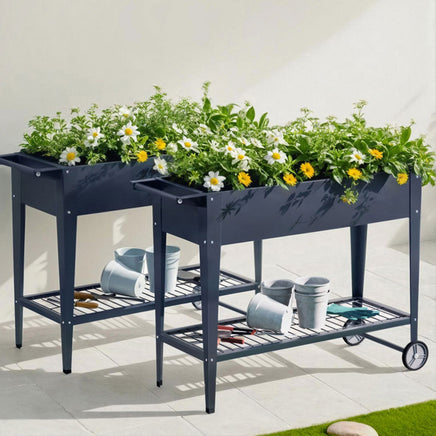 Practical and aesthetic, the Green Fingers Raised Garden Bed is an incredible addition to your beautiful garden. The bed is made from sturdy galvanized stainless steel that is easy to maintain – it will hold its shape even after long-term use. Unlike other plant beds that are simple frames, the Green Fingers Raised Garden Bed is a gorgeous portable structure with a generously sized garden bed to grow your own fruits, vegetables and flowers. The raised plant bed prevents excess moisture and pests and lessens the need to bend down. Two smooth wheels make it easy to move the garden bed to the ideal position. An additional storage shelf can help keep your essential garden tools tidy and close by. It's even easy to assemble using the provided tools and instructions. The perfect gift for the gardening enthusiast in your life, get your Green Fingers Raised Garden Bed today!