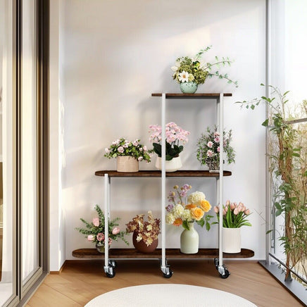 Plant Stand with Wheels Indoor Outdoor Flower Rack Display