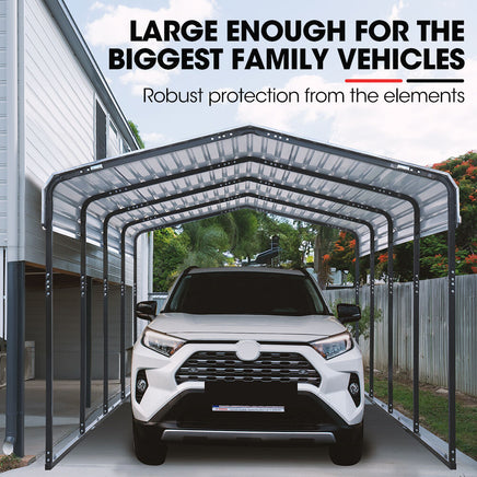 This heavy-duty Shade Shield Carport is an ideal solution to safeguard your vehicles and equipment. With a generous size of 3.3m in width, 6m in length and 2.9m in height, there is ample space for residential, construction and agricultural applications, such as vehicles, marinecraft, caravans, trailers, building and farm equipment and materials.