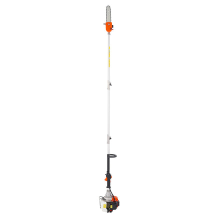 Equipped with a 43 cc 2-stroke gasoline engine, the gas pole saw delivers1.75 hp and a max speed of 12,000 RPM for efficient branch cutting. Includes two 33.7 in (85.5 cm) extension rods that extend from 6.9 ft (2.11 m) to 11.8 ft (3.61 m) for reaching high branches. The 90-180° adjustable cutting head handles different pruning angles.