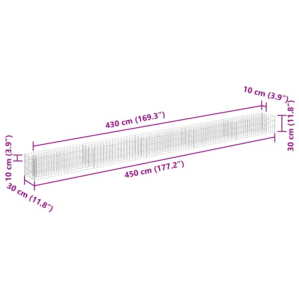 This gabion raised bed allows you to conveniently create a secure yet stylish border for a flower or plant bed in your garden or on your patio. The sturdy gabion is designed to be filled with rocks or gravel. Made of rustproof and weather-resistant galvanised steel, the gabion is very stable and durable. The transverse and longitudinal wires welded at every intersection offers extra stability to the gabion planter and also works as a mesh grid. Our gabion planter is easy to assemble. Please note that stones and plants are not included in delivery.