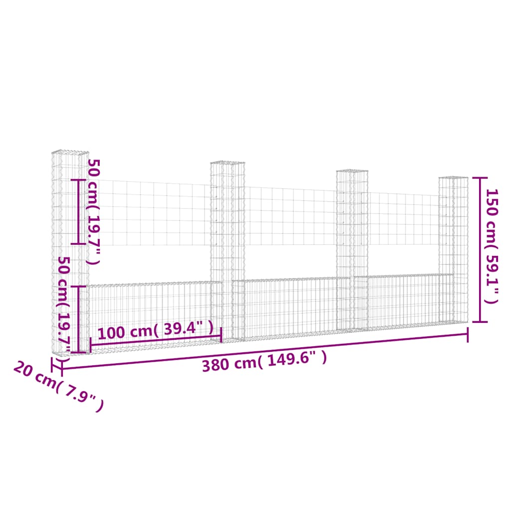 U-shape Gabion Basket with 4 Posts Iron 380x20x150 cm