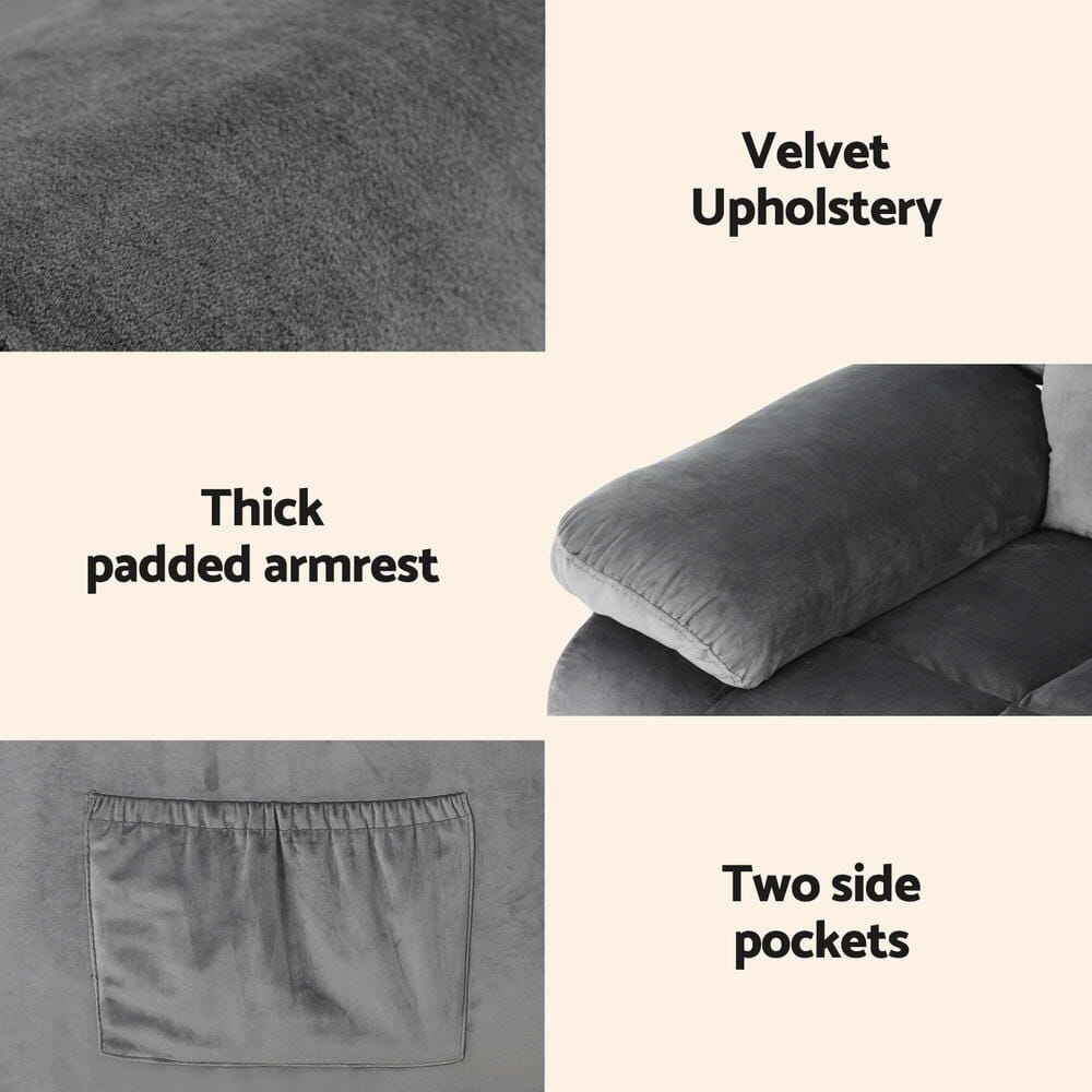 Recliner Chair Electric Massage Chair Velvet Lounge Sofa Heated Grey