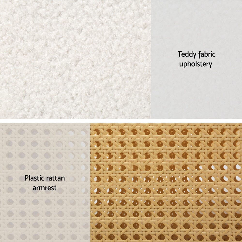 Allow your body to completely relax after a hard day�s work with the soft, cosy embrace of an Artiss Rocking Chair. Crafted with premium teddy fabric and PE rattan, the rocking chair exudes vintage elegance, adding a touch of luxury to your space. The soft and plush texture, thick cushioning and classic design invite you to kick back and relax, creating a cosy oasis for relaxation and comfort. The gentle rocking motion can help relax the body and rejuvenate the soul. A solid rubberwood frame and legs keep the chair stable and secure and allow for a weight capacity of 150kg. Anti-slip pads keep the chair in place and prevent scratches on your floors. Vintage-style rattan armrests make the chair practical as well as comfortable. Use our chair for relaxation, nursing, or simply enjoying the day. Get your Artiss Rocking Chair today.