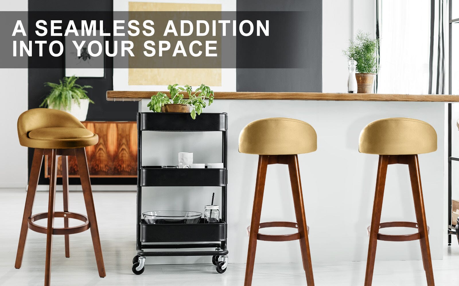 To ensure safety, the legs are tapered outwards to form a slight A-shape, so that the bar stool is well-balanced without occupying too much space. Additionally, the legs are made of solid plywood with a circular footrest to ensure extra sturdiness and support. This does not mean comfort is sacrificed as the seat itself is upholstered with PVC leather padding. Installed with a swivel mount plate, the seat will swivel 360 so that you can reach whatever you want, maximising accessibility. Stool legs are also equipped with anti-slip protectors to minimise scratches onto wooden and tile floors. To give you a peace of mind, the bar stool will only take you approximately 9 minutes to assemble.