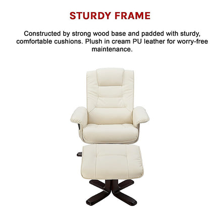 Massage Recliner with Footrest - Cream