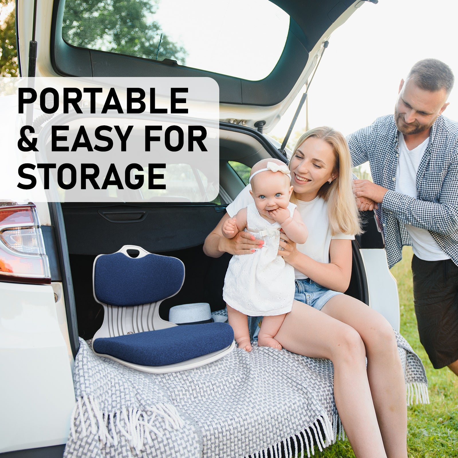 Crafted for extended periods of sitting, this chair is highly recommended for those seeking to maintain a comfortable posture while reducing discomfort. It can be placed on a chair, bench, or floor, and includes supportive features to promote overall health and comfort.