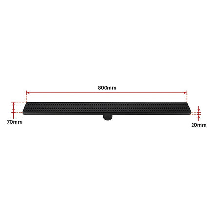 800mm Bathroom Shower Black Grate Drain w/Centre outlet Floor Waste