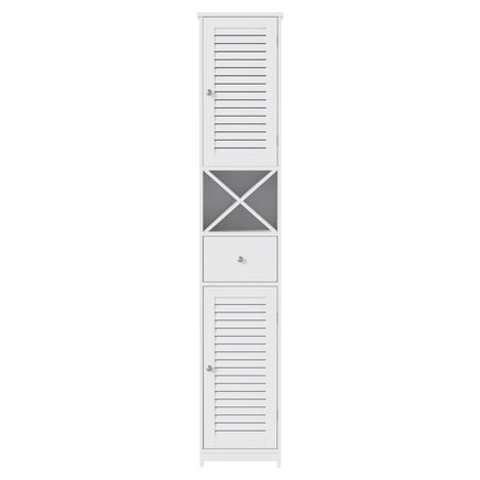This versatile storage cabinet offers smart organisation beyond the bathroom. Its tall, slim profile fits perfectly in corners and tight spaces, while the adjustable shelves and unique X-shape shelf adapt to all your storage needs. In the bathroom, it neatly organises towels and toiletries; in the living area, it stores books and wine bottles; in the entryway, it keeps essentials tidy. The painting finish ensures durability in humid conditions, and the elegant louver doors add stylish design. This cabinet combines functionality with contemporary design for multiple living spaces.