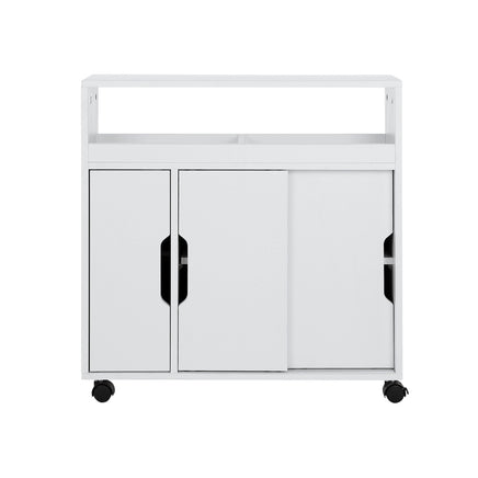 Keep your bathroom organised with an Artiss Bathroom Storage Cabinet. This neat and tidy storage solution is made from durable particleboard for long-lasting use. A combination of three cabinets and two open shelves with raised edges gives you plenty of storage for your bathroom essentials. The cabinets feature a combination of swinging and sliding doors with curved handles for ease of use. Four smooth castor wheels mean you can place it anywhere in your bathroom with ease. Easy to install and easy to clean, the Artiss Bathroom Storage Cabinet is just what your bathroom needs to stay tidy.