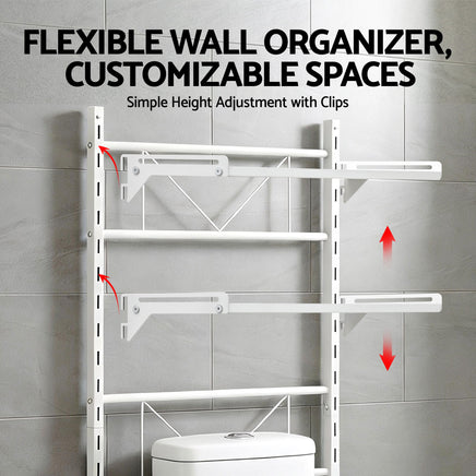 This functional over the toilet storage unit adds practical space to your home. Its upgraded steel frame is strong and durable. The surface resists moisture and is easy to wipe clean. A raised barrier helps keep items secure. Ideal as sturdy bathroom storage for toiletries or laundry essentials, it is a simple solution to organise any room.
