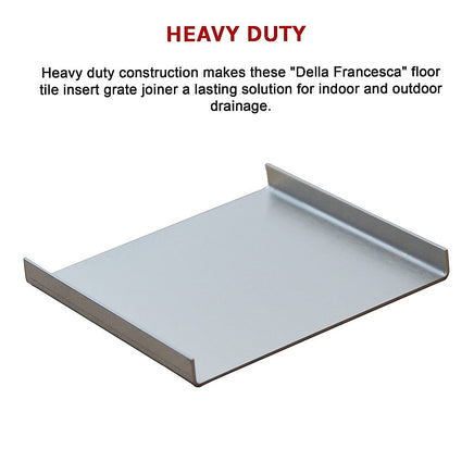 Heavy duty construction makes these "Della Francesca" floor tile insert grate joiner a lasting solution for indoor and outdoor drainage.