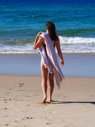 The Portsea pure cotton beach towel are quick drying and compact, making them ideal for beach trips. Enjoy the luxury softness in your next outing in the sun.
