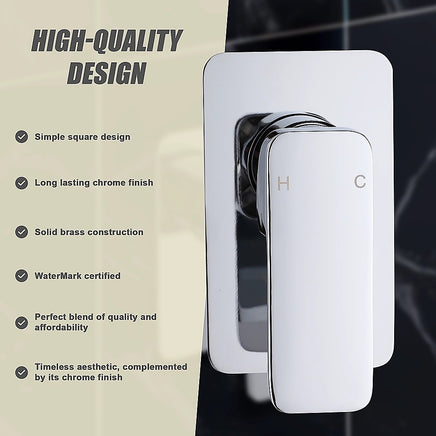 Sporting a sleek, squared design, this single mixer amps up the sophistication of any Aussie bathroom. With its minimalist style and chrome finish, it effortlessly fits in with different interior vibes. Crafted from solid brass, this mixer promises top-notch performance that lasts for yonks.