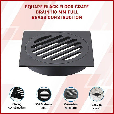 Square Black Floor Grate Drain 110 mm Full Brass Construction SALE