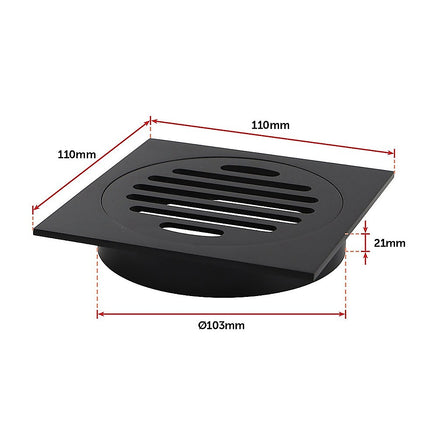 Square Black Floor Grate Drain 110 mm Full Brass Construction