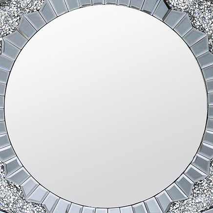 Wall mirror is made of high quality MDF and Glass. MDF ensures strong construction while the high quality glass provides clear and undistorted image. Moreover, crush crystal is adorned all over its body. This creates a sparkling ambience all over it.