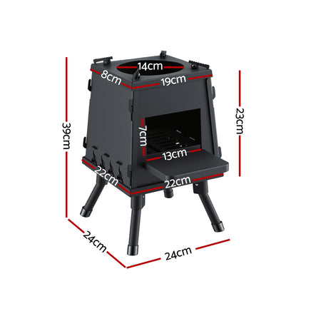 Master any outdoor cooking challenge with the Grillz Portable Wood Burning Stove. Built from premium, durable cast iron, this high-efficiency stove features air vents and a large chamber for a strong, 40-60 minute burn using wood or charcoal. Its fully adjustable pot supports and foldable, rotating legs ensure stable cooking on any terrain. Designed for ultimate portability, it sets up in minutes, folds compactly, and comes with a carrying bag. The perfect, reliable companion for camping, hiking, survival, and backpacking adventures.