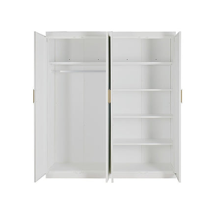 Upgrade your bedroom with this 4 Door White Wardrobe, a stylish and functional storage solution crafted from durable steel plates. Finished with powder coating and accented with gold metal handles, this wardrobe brings modern elegance and long-lasting performance to any space.