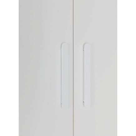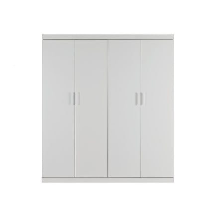 4 Door White Wardrobe Cabinet – Hanging Rail, Shelves & White Handles