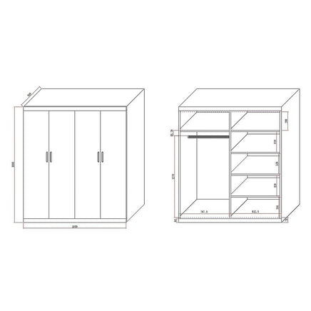 • 4-Door Wardrobe Perfect for modern bedrooms needing ample storage