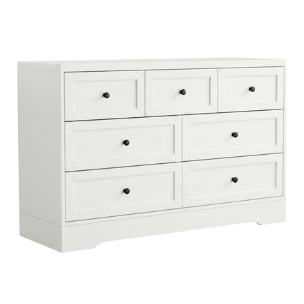 The Artiss Chest of Drawers offers a perfect blend of style and functionality, featuring 7 spacious drawers for all your storage needs. The metal handles add a modern touch, while the anti-rust coated metal drawer runners ensure smooth operation. With a high weight capacity, the top drawers can hold up to 5kg, while the bottom drawers support up to 10kg, this chest is designed to hold your items securely. It also includes a wall attachment for added stability and safety.The paper veneer finish makes the chest easy to clean and maintain. Whether for your bedroom, living room, or hallway, the Artiss Chest of Drawers is a versatile and practical addition to any space.