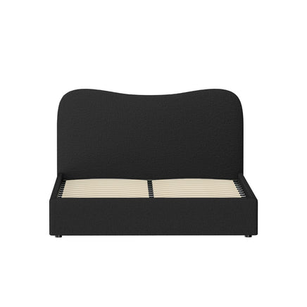 Introducing our elegant Artiss bed frame: upholstered in boucle fabric, featuring wooden frame with slat support, padded headboard, smooth edge finish, and sturdy metal connectors for a blend of style and functionality in your bedroom.