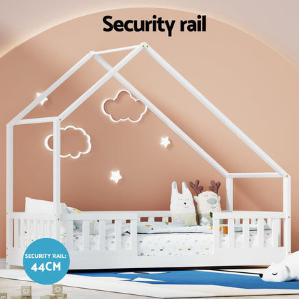 Artiss Bed Frame Wooden Kids House Single Frame White PAVO SALE