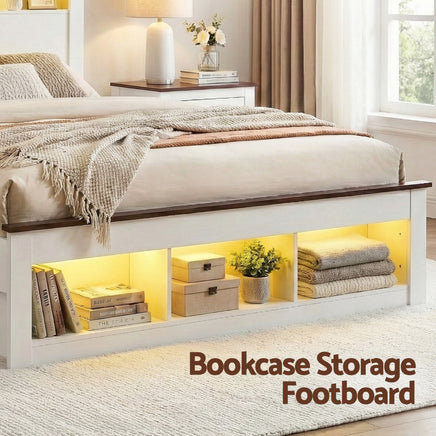 Unmatched Storage Solutions: Maximize your space with our farmhouse-inspired bookcase headboard and footboard. Featuring 6 separate compartments, it provides ample room to display your favorite books, store linens, or keep essentials within arm's reach.