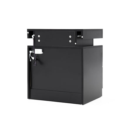 La Bella Bedside Table 2 Drawers RGB LED Bedroom Cabinet Nightstand Gloss AURORA - Black