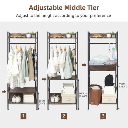 - Versatile Storage: Features a hanging rod, top shelf, and two adjustable shelves for clothes, shoes, and accessories.