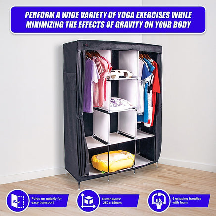 Crafted from waterproof, non-woven canvas fabric, this wardrobe works equally well in your pool house or shed to hang towels, bathing suits, or other outdoor equipment. Supported by eight strong metal legs, it's as sturdy as a portable wardrobe can be. Eco-friendly polyester canvas protects your belongings from dirt, dust, and moisture. Assembly is a snap, thanks to the extended ferrules that join the legs and reinforced metal shelving to form the frame. Don't miss this chance to not only organise your belongings. Order yours today!