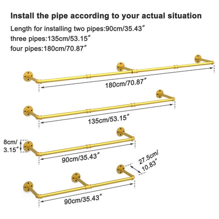 Industrial Wall-Mounted Pipe Clothes Rack Gold