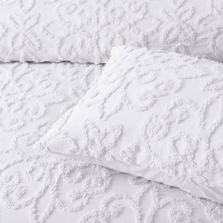 Bianca Ella White Cotton Chenille Floral Bedspread Set Double