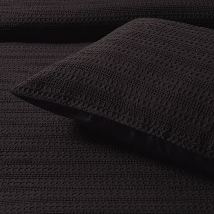 The Bianca Kahlani Chocolate Waffle Quilt Cover Set is made from a beautiful waffle fabric which features a horizontal jacquard design. Available in three on trend colours, Chocolate, Charcoal and sage. This set features a chocolate tone that's rich, warm, and perfect for layering. Whether you're decorating a master bedroom or a guest room, this quilt cover brings a simple elegance that suits just about any setting.