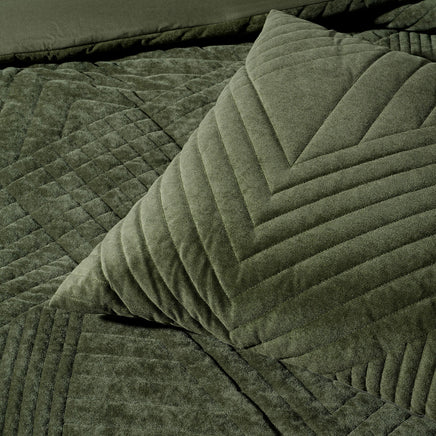 Jump into bed and feel instantly cosy with Navarro Olive Soft Velvet Geometric Quilt Cover Set by Bianca. A deep, olive, velvet fabric has been carefully selected to assist with the emphasis of the gorgeous geometric quilted pattern. Add our Heston sheet set in charcoal to bring the entire look together. Finish the look with matching accessories.