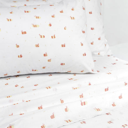 This adorable Bumble Multi Printed Sheet Set by Jelly Bean Kids will add a charming flair to your kid's bedroom and will make bedtime fun again. It features a cute small bees design printed in white, brown, and yellow colour tones for a naturally charming and adorable bedroom design for your kids. It is made from polyester cotton blend fabric that is durable and soft that will surely give comfort to your little ones.