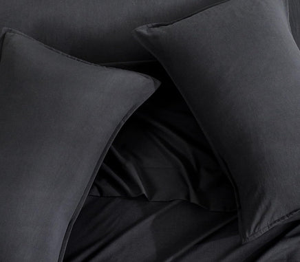 Vintage Washed Microfibre Sheet Set with 1 Pillowcase - Black - Single SALE